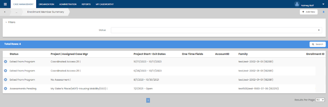 Case Management Tab > Left Menu: Case Management > Program Enrollment
