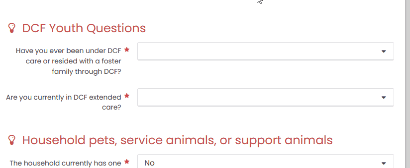 - On the CA Intake Form the DCF Youth Questions will only appear for Individuals that fall in the 18-24 yr old Youth group.