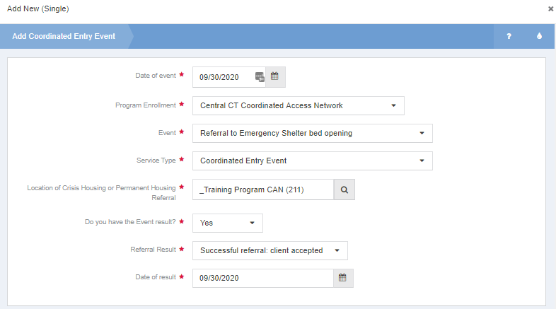 - Select the Coordinated Entry Event “Service Type” from the drop down menu.