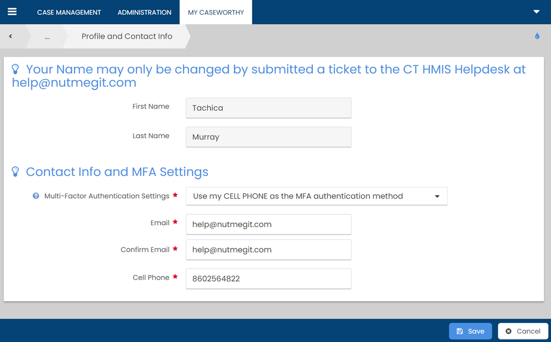 CaseWorthy – CT HMIS Contact Information Update for Multi Factor Authentication Settings (MFA) Quick Guide