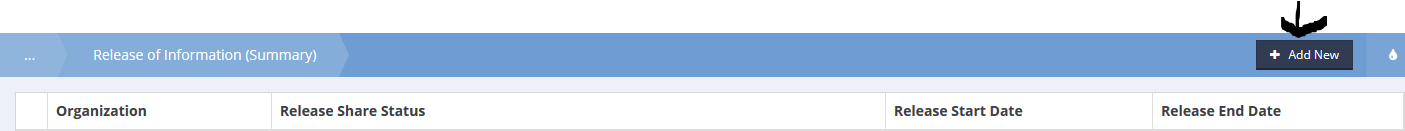 - On the Release of Information (Summary) page, click on the Add New button towards the top right of the screen.