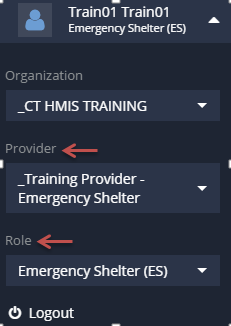 2. Your Provider should be the name of the Provider you wish to enter data for (Top right corner).