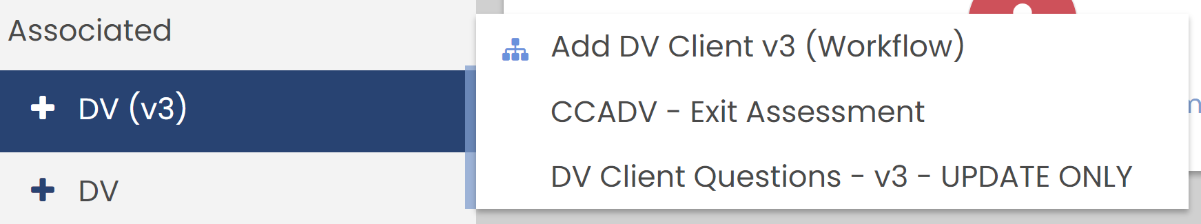 A link to the exit assessment that shows when a CCADV enrollment is completed by the CAN staff - DV Client Questions – v3 – UPDATE ONLY, use this to update/edit any of the entry assessment questions.