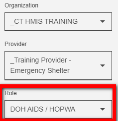 Your Role must be set to DOH AIDS/HOPWA.