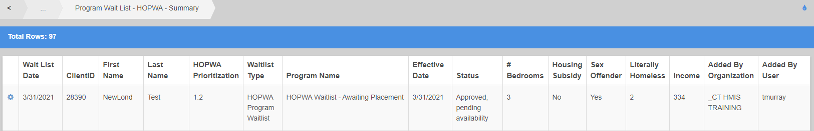 HOPWA Waitlist (All Clients)