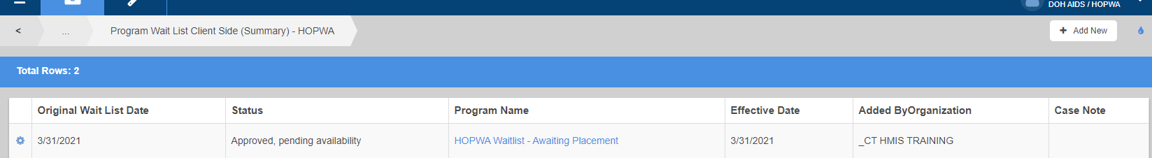 Add Client to HOPWA Waitlist (Workflow)